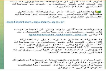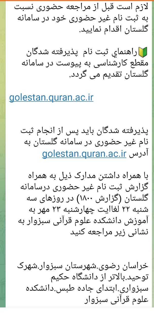 پذیرفته شدگان دانشگاه علوم ومعارف قرآن کریم در مقطه کارشناسی میتوانند جهت کسب اطلاعات بیشتر در خصوص نحوه ثبت نام شرایط و مدارک مورد نیاز و همچنین اطلاعات مربوط به دانشکده ها علوم قرآنی محل قبولی خود از طریق آدرس اینترنتی زیر اقدام کنند.